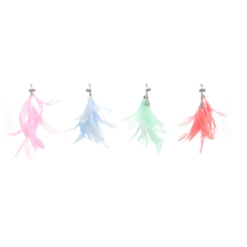 FlamingoEen leuke hengel voor uw kat. Met een glitterstokje en pauwenveren erop. In drie kleuren, oranje, groen of roze. Lengte: 36 cm