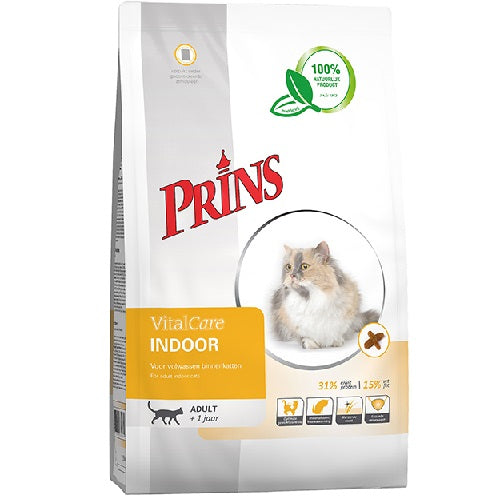 PrinsVitalCare indoor is een gezonde voeding voor volwassen binnenkatten tot ongeveer 7 jaar. De katten blijven in topconditie vanwege de extra zalmo...
